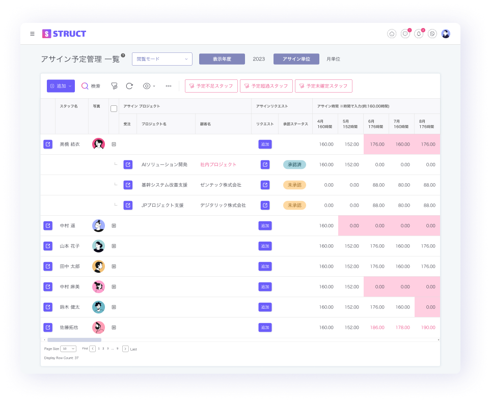 変化します。スタッフのアサインを最適かつ迅速に管理することは収益に直結する重要課題。STRUCTはスタッフアサインの合理的な管理の仕組みを提供します。