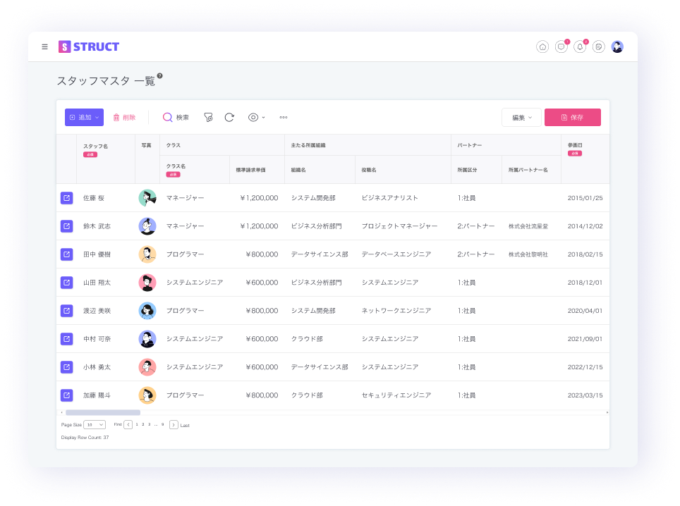 STRUCTでは、全スタッフの年間のアサイン予定を一覧で確認することができます。