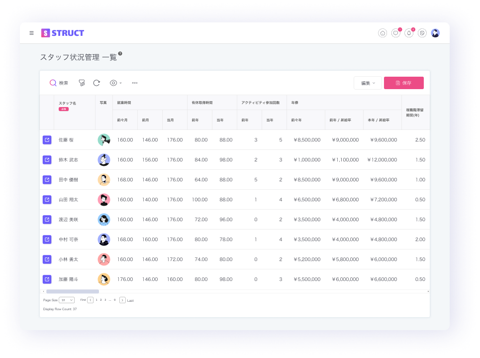 STRUCTでは、スタッフの就業状況や研修参加回数などをモニタリングしています。​