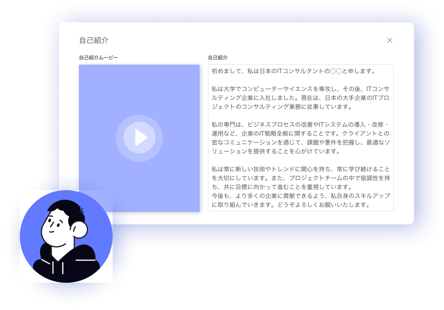 STRUCTでは、全てのスタッフが社内向け自己紹介と自己紹介ビデオを登録することが可能です。