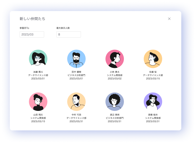 STRUCTでは、新規に入社したスタッフがトップ画面に表示されます。