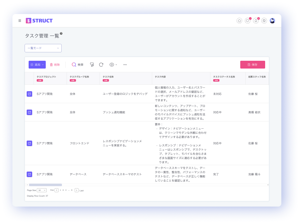 STRUCTでは業務連絡を誰でも簡単に登録でき、トップ画面で通知することで、全スタッフへ漏れなく発信できます。