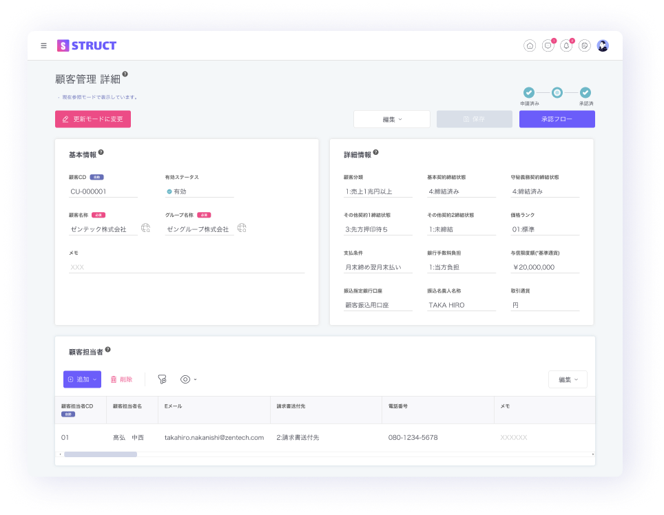 STRUCTでは、引き合い中の案件から管理することができ、その案件ステータスと確度を可視化し、